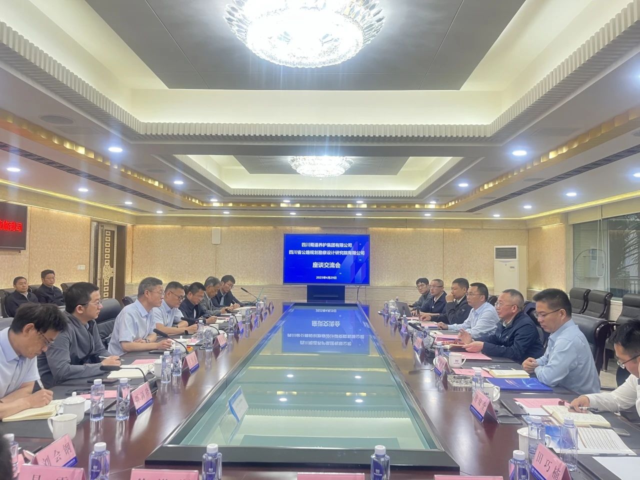 4月29日下午,蜀道养护集团与四川公路院举行工作座谈会,蜀道养护集团党委书记、董事长王世法,四川公路院党委书记、董事长罗玉宏出席座谈会并讲话。